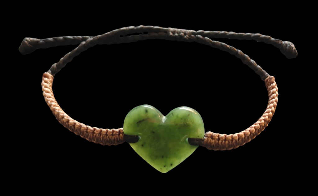 NZ Pounamu Greenstone Heart Cord Bracelet #09D