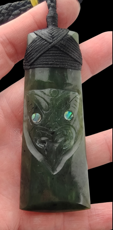 NZ Greenstone Toki Mask Carving With Paua Eyes.