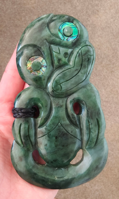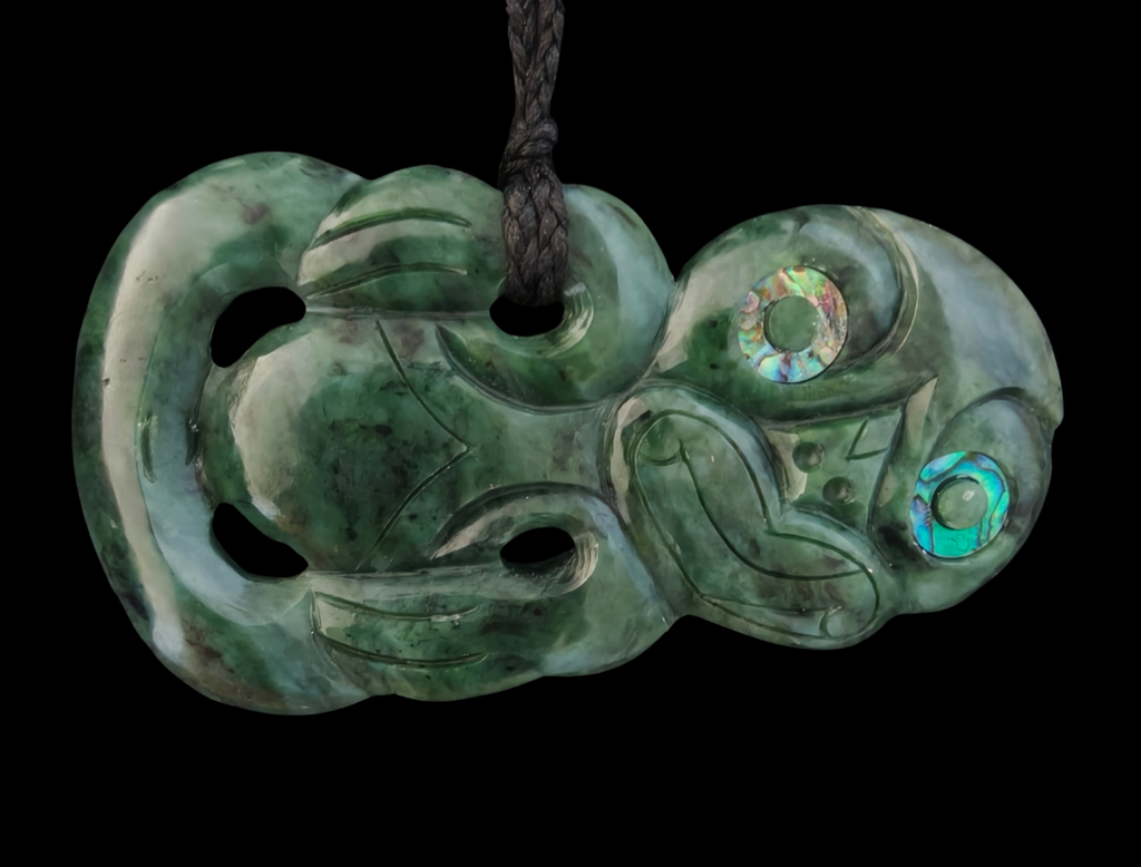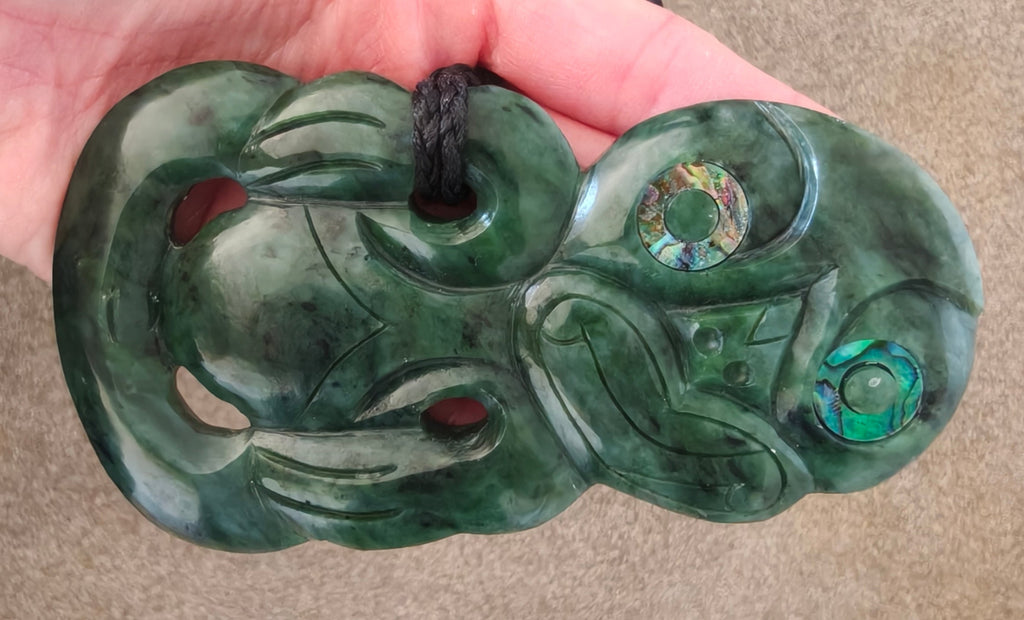Carved in New Zealand using genuine New Zealand Greenstone from the West Coast of the South Island.