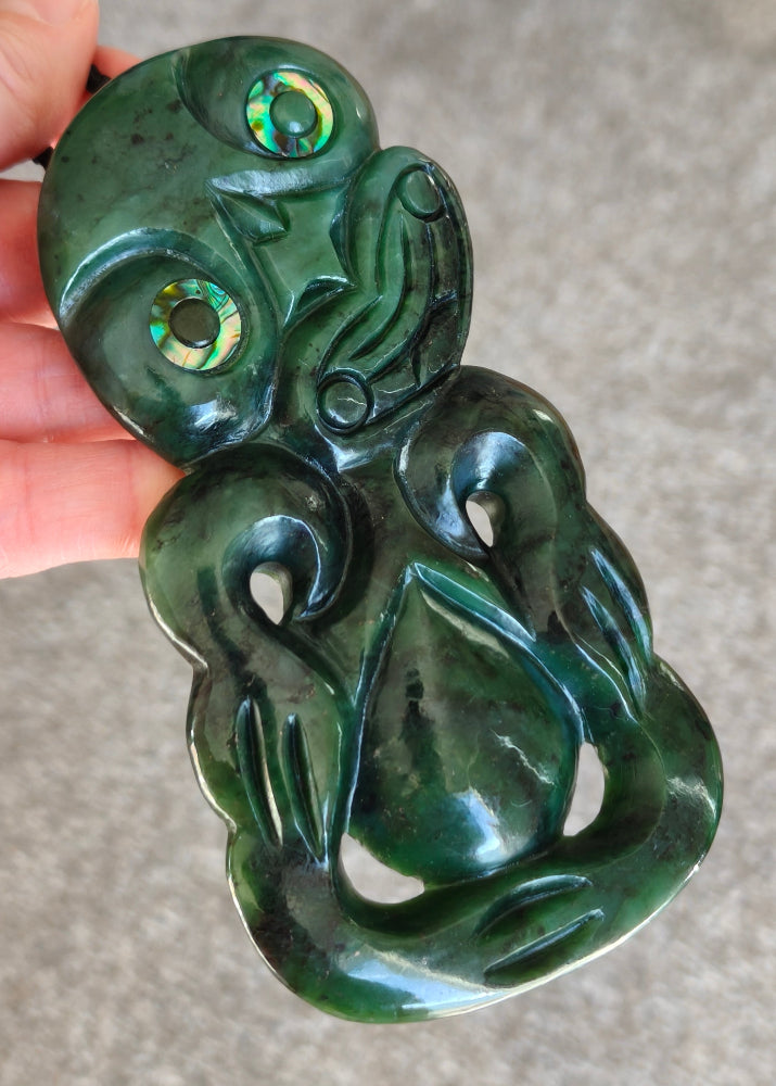 Carved in New Zealand using genuine New Zealand Greenstone from the West Coast of the South Island.